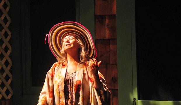 But no one would call this show fast-paced either. The first act is suspended in 1941, with the conversation slogging through swing and softshoe. It takes forever to build to the inevitable climax. Act II is stuck in the depressed 1970s where a squatter chomping down on an ear of corn passes as cause for celebration.
